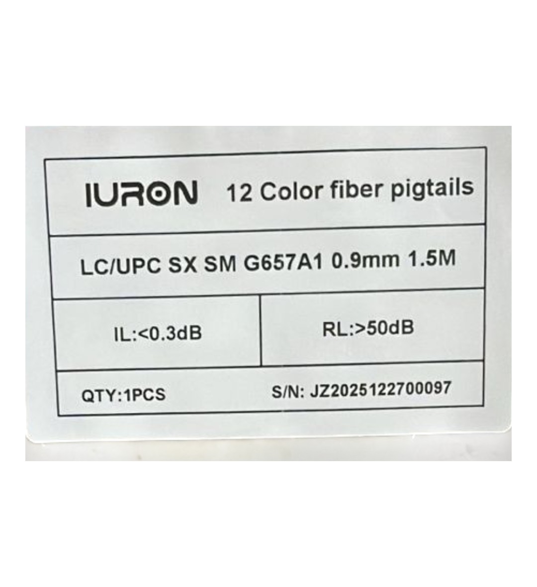 F. PIGTAIL TRANÇADO LC-UPC 0.9MM 1.5M G657A1 12 CORES IURON