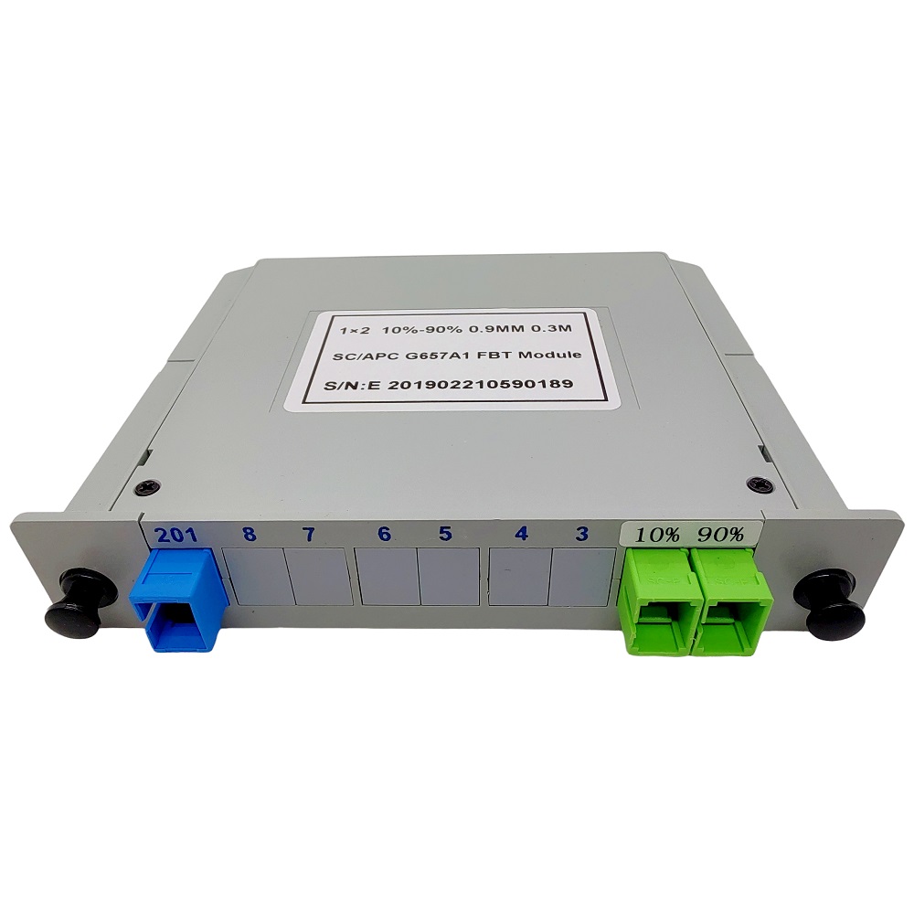 Divisor Óptico FBT SC APC. O divisor óptico é um componente essencial usado na arquitetura de rede FTTH PON, na qual uma única entrada óptica é dividida em múltiplas saídas.