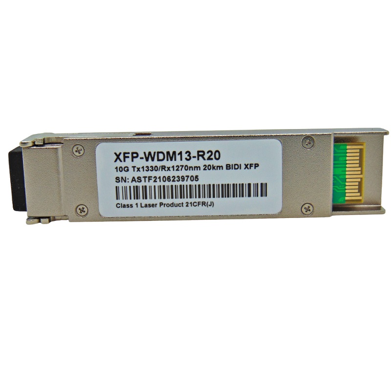 Este transceptor 10G XFP BiDi é projetado para transmitir e receber dados óptico sobre o único modo de fibra óptica para o comprimento do elo de 20 km.