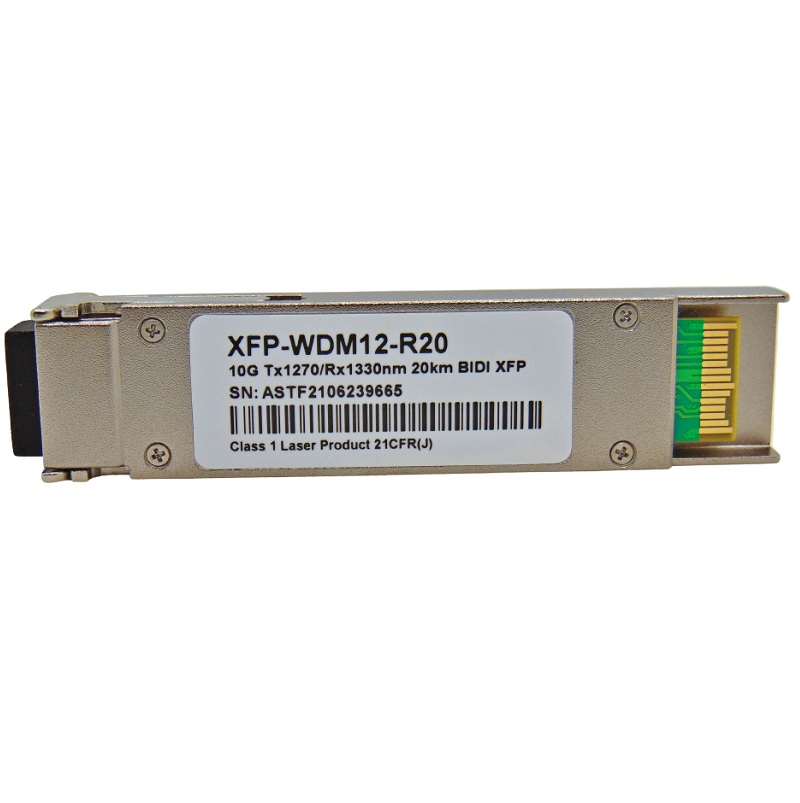 Este transceptor 10G XFP BiDi é projetado para transmitir e receber dados óptico sobre o único modo de fibra óptica para o comprimento do elo de 20 km.