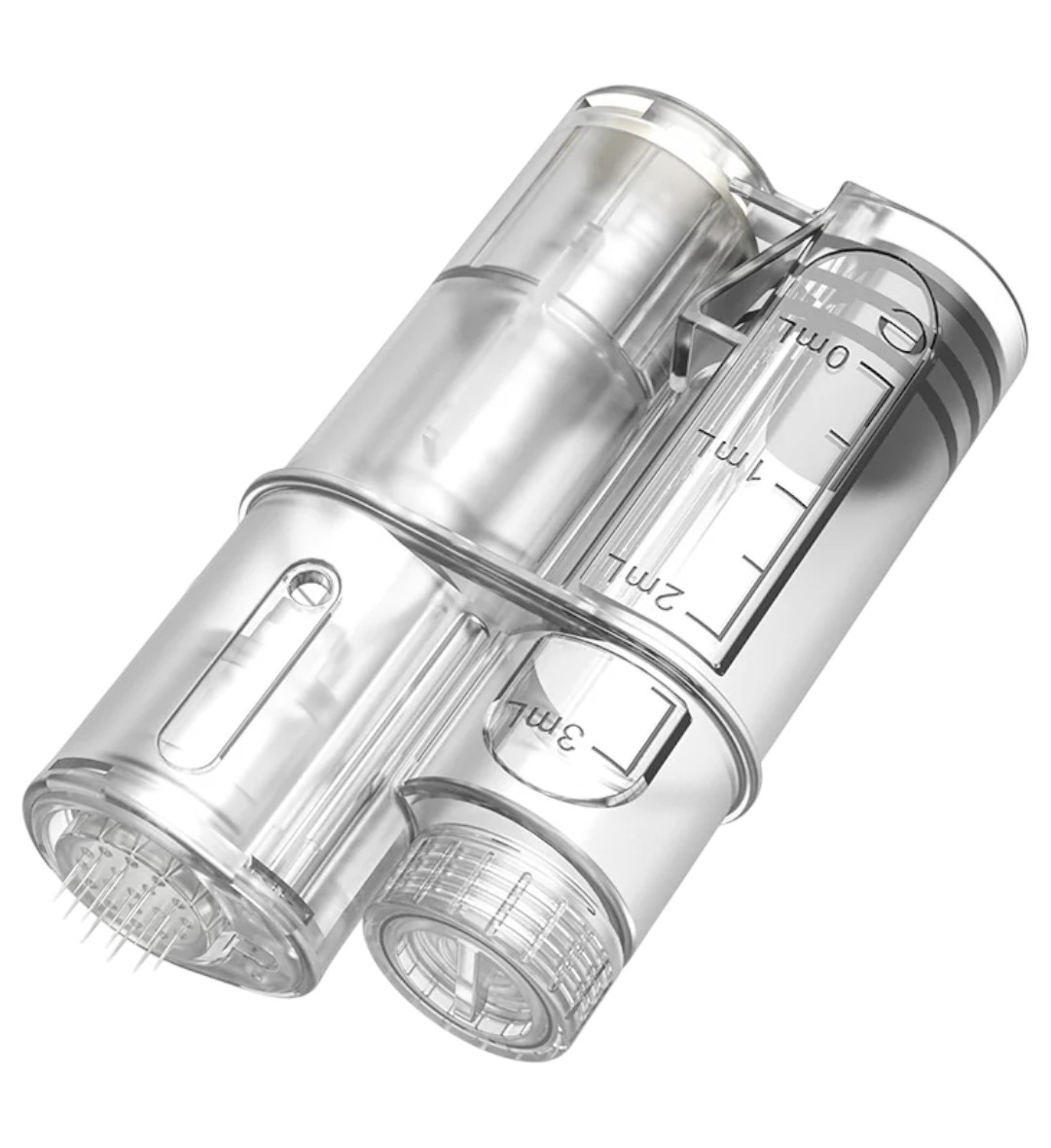Recipiente para soro integrado de 3 ml: Garante capacidade suficiente de soro para aplicação contínua durante os tratamentos.