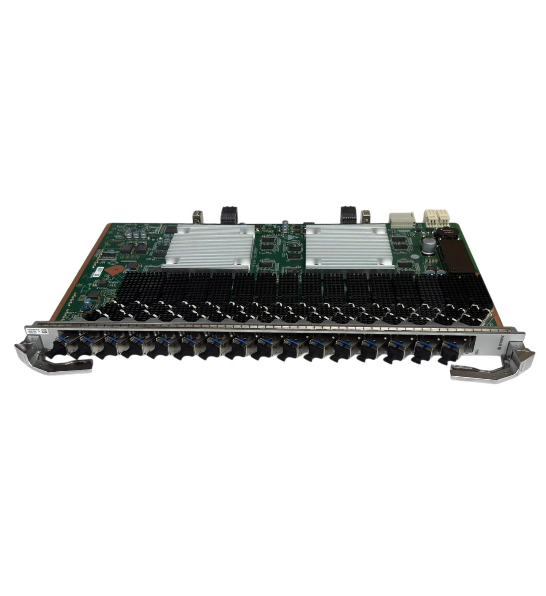 Huawei MA5800 placa de interface OLT combo de 16 portas XGS-PON e GPON, projetada para ambientes de acesso de alta capacidade. A placa CSHF suporta simultaneamente XGS-PON, XG-PON e GPON, permitindo migração suave de redes legadas para redes de ultra banda larga.