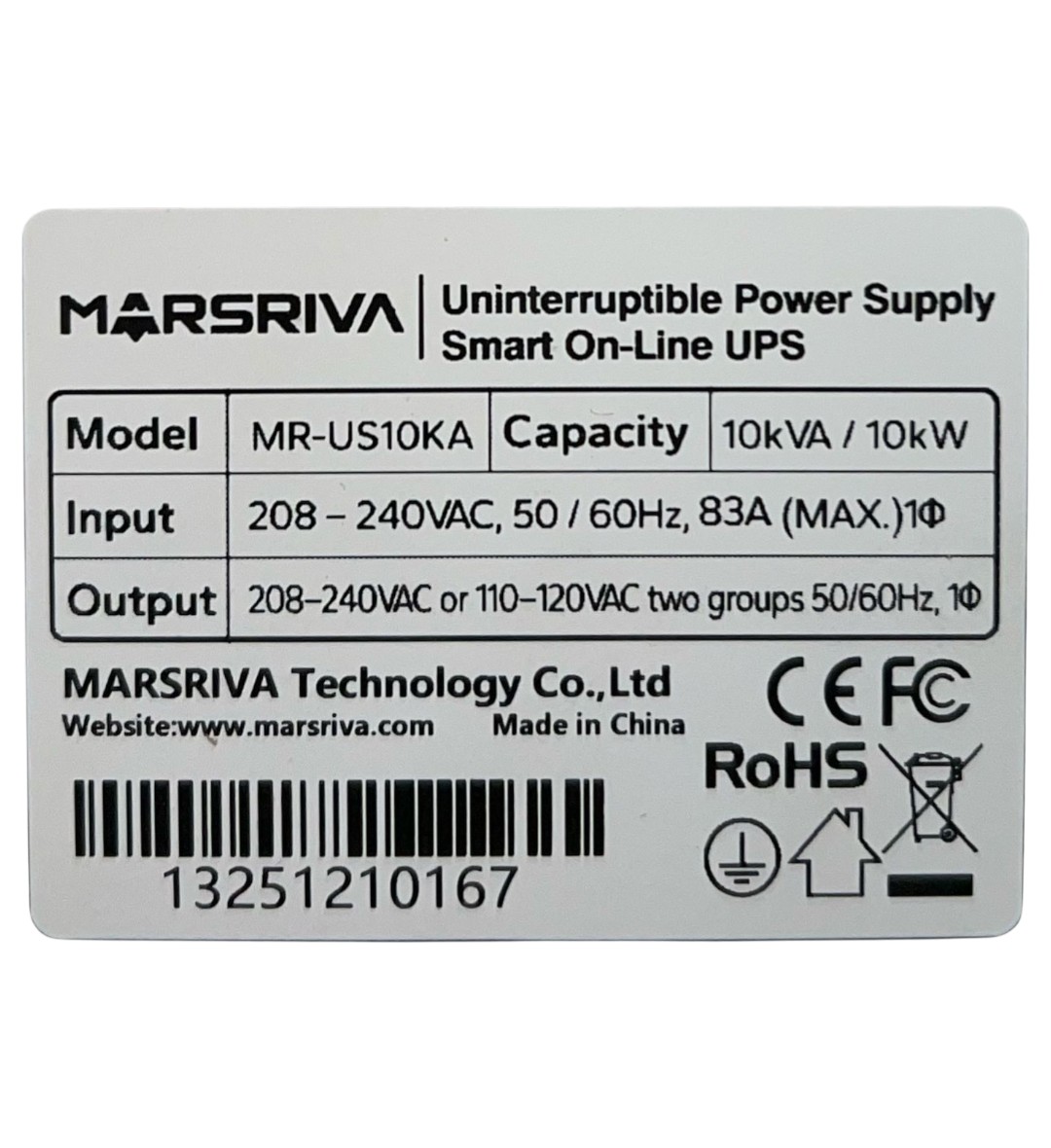 Modelo: NOBREAK UPS ONLINE MR-US10KA 10KVA 10KW 16*12V/7AH 240V MARSRIVA