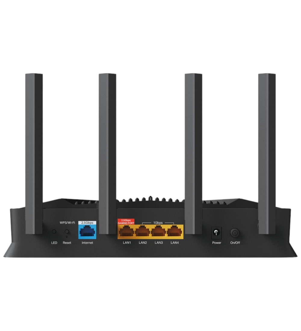 - Portas Ethernet: 1 WAN de 2,5 Gbps, 1 LAN de 2,5 Gbps, 3 LAN de 1 Gbps.