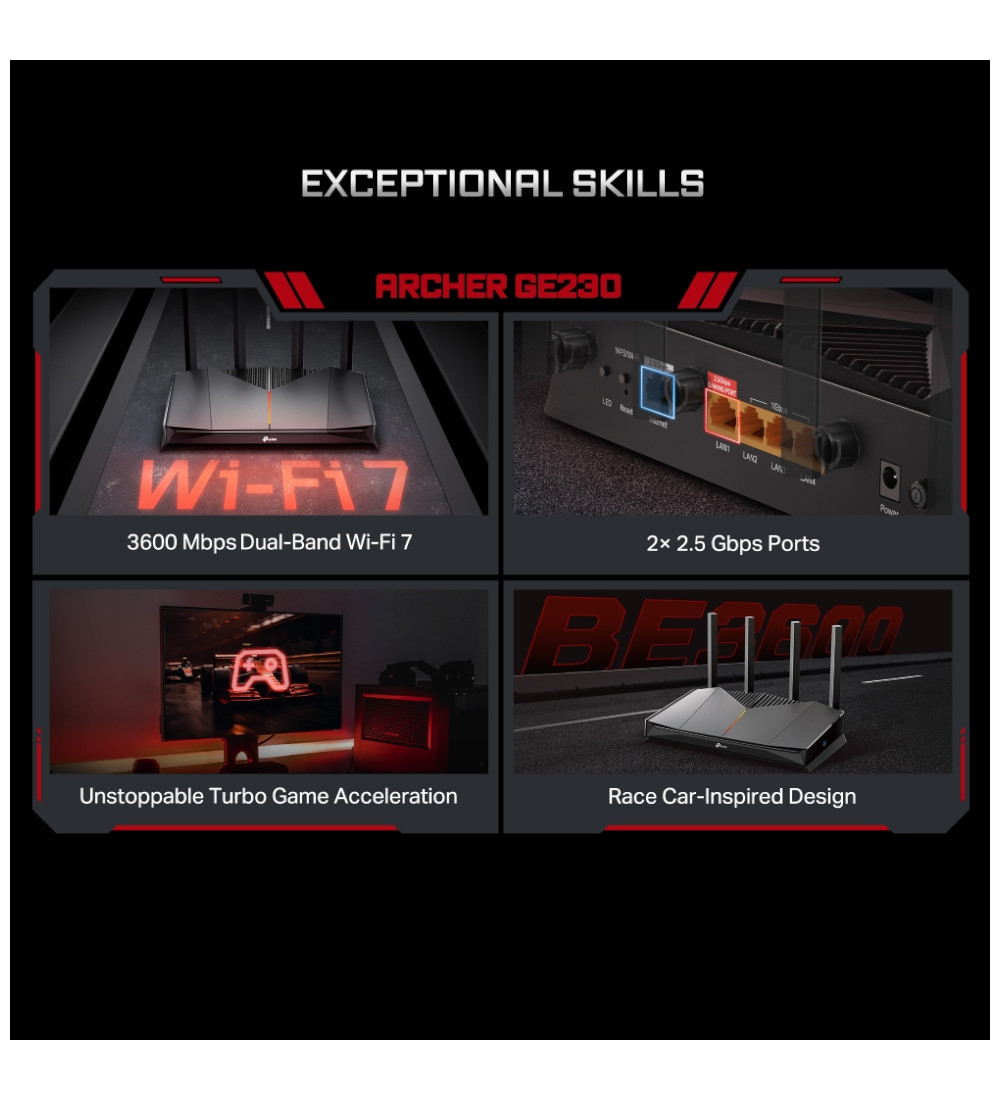 Modelo: TP-LINK WIFI 7 ARCHER GE230 ROUTER BE3600 DUAL BAND GAMER
