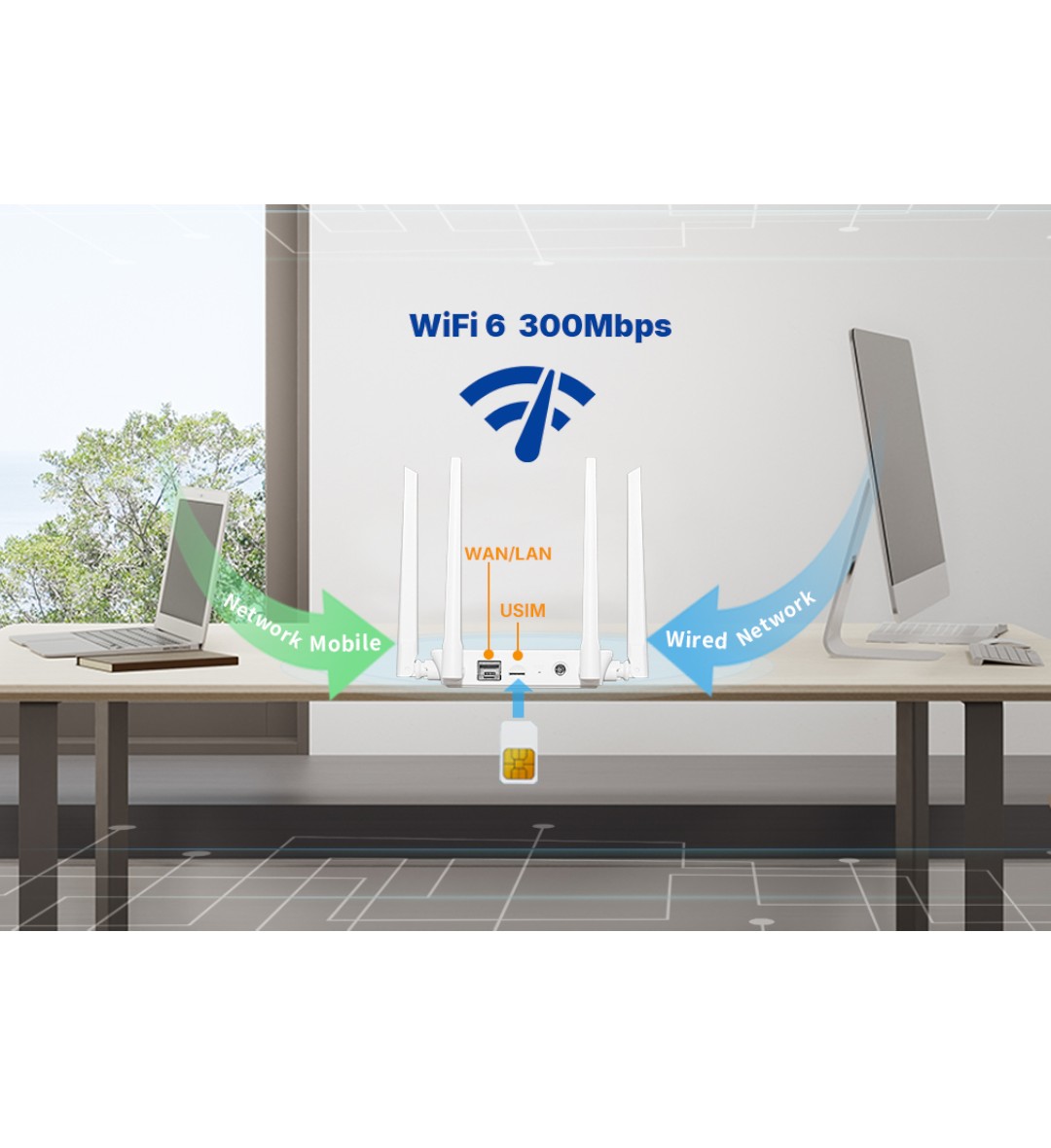 - Interface: 1FE (Fast Ethernet) + Slot USIM + Wi-Fi 6.