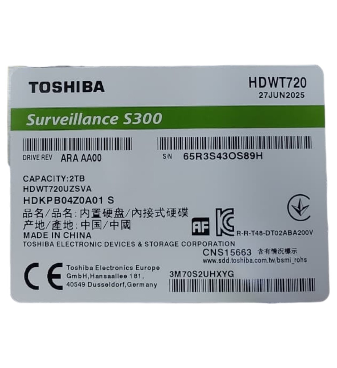 HD 2TB TOSHIBA SATA3 5400RPM SURVEILLANCE S300 HDWT720UZSVA