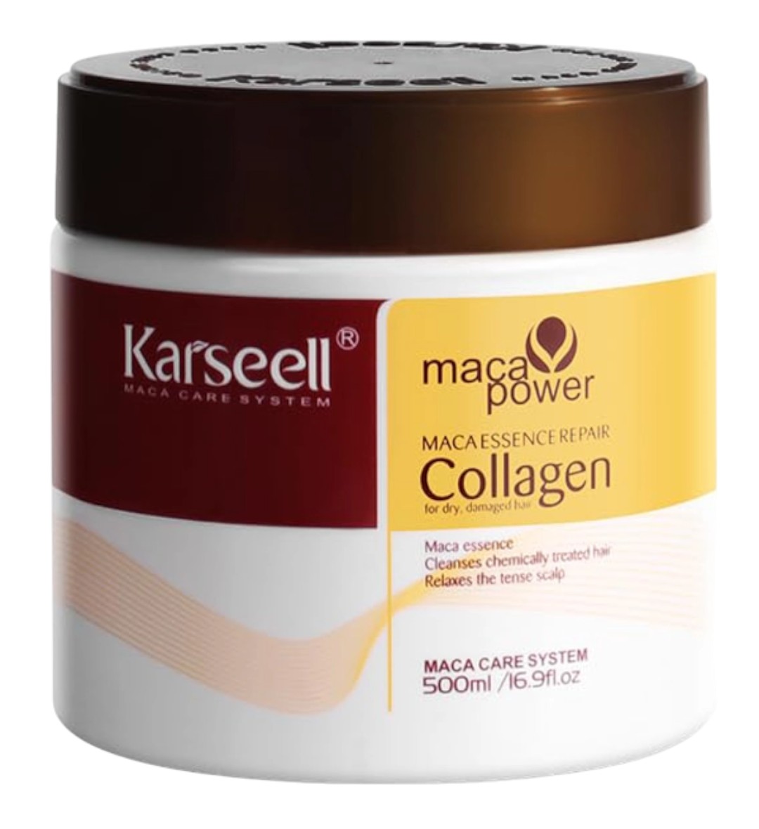 A Karseell apresenta uma máscara capilar de tratamento profundo, desenvolvida para restaurar e revitalizar cabelos secos, danificados ou Quimicamente tratados. Com uma fórmula enriquecida com colágeno ativo, óleo de argan e extrato de maca peruana, o produto atua desde o interior