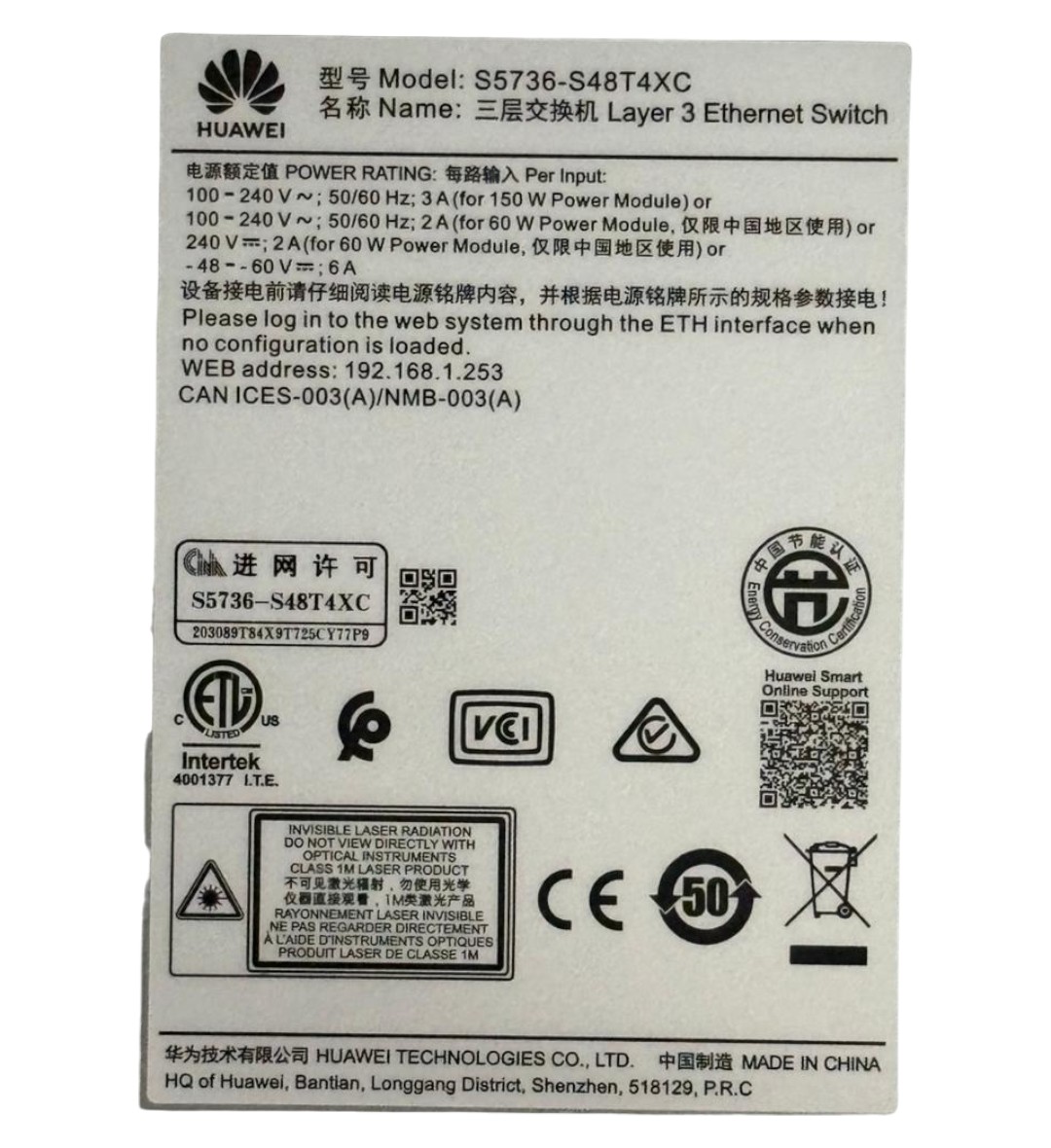 HUAWEI SWITCH 48P S5736-S48T4XC-AC 4*10G SFP+ 48*10/100/1000