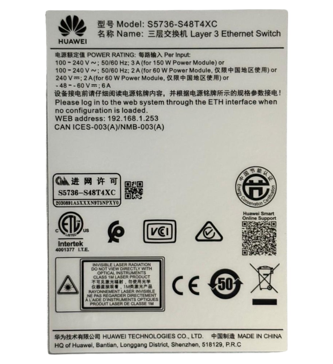 HUAWEI SWITCH 48P S5736-S48T4XC-DC 4*10G SFP+ 48*10/100/1000