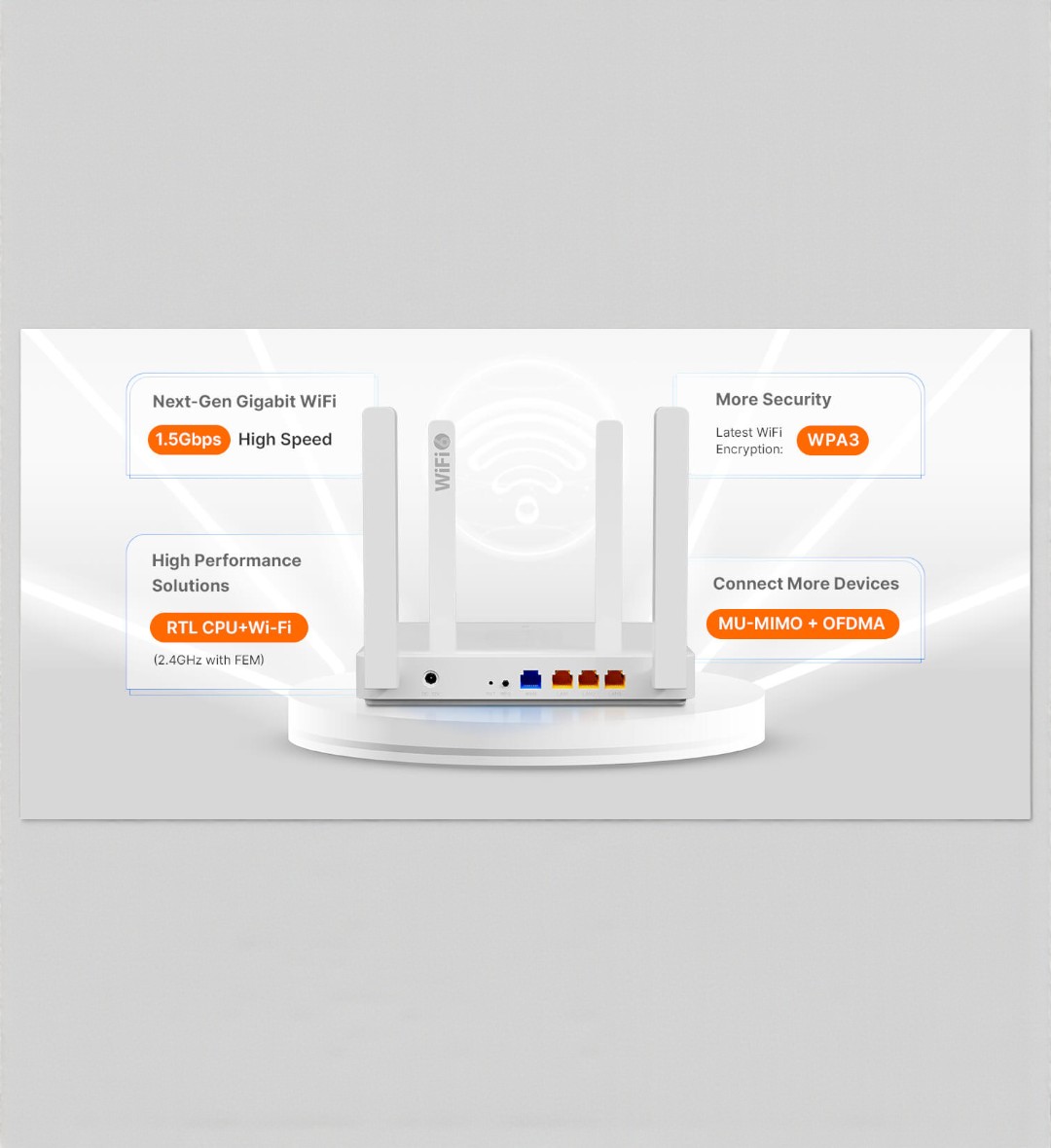 Roteador com 1 WAN GE + 3 LAN GE + Wi-Fi 6