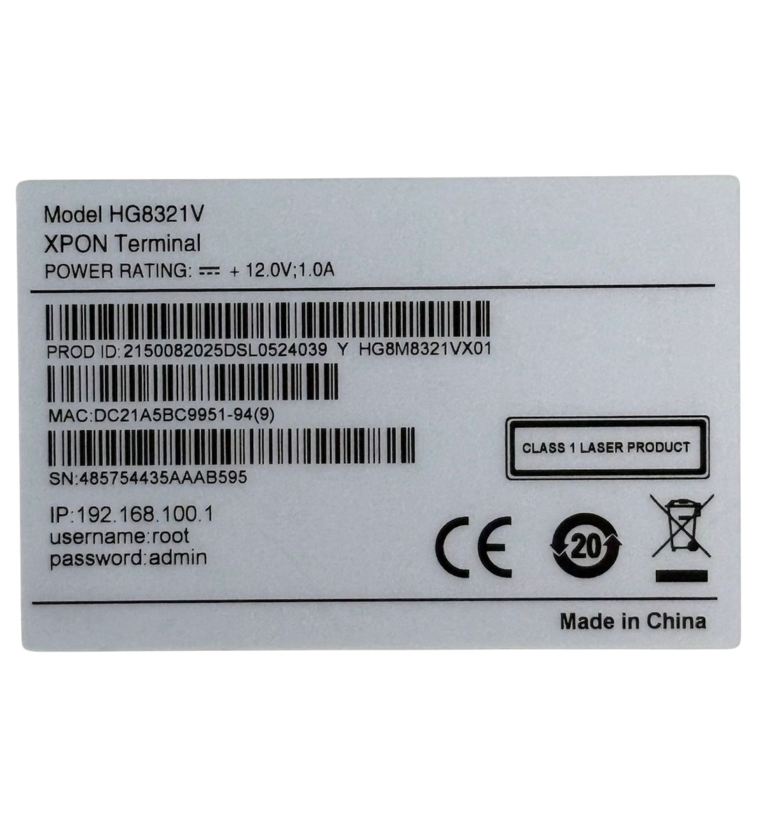 F. ONT CATV GPON/EPON XPON HUAWEI HG8321V 1GE+1FE+1POTS APC