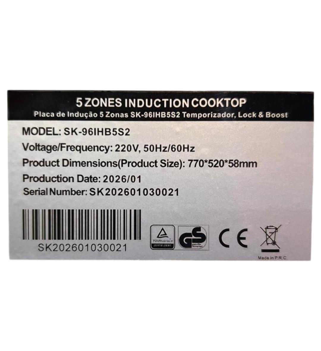 COOKTOP DE INDUÇÃO EMBUTIDO 5 BOCAS 50-60HZ 220V 96IHB5S2