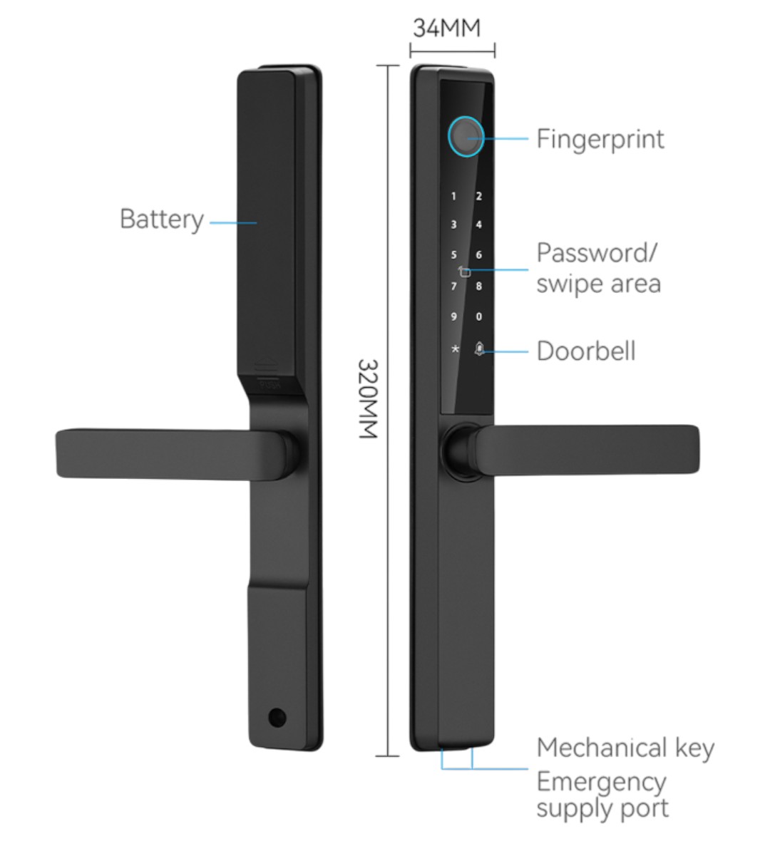 FECHADURA DIGITAL S960 WIFI TUYA/SENHA/CARTÃO/CHAVE/USB PRET| Excell Informática