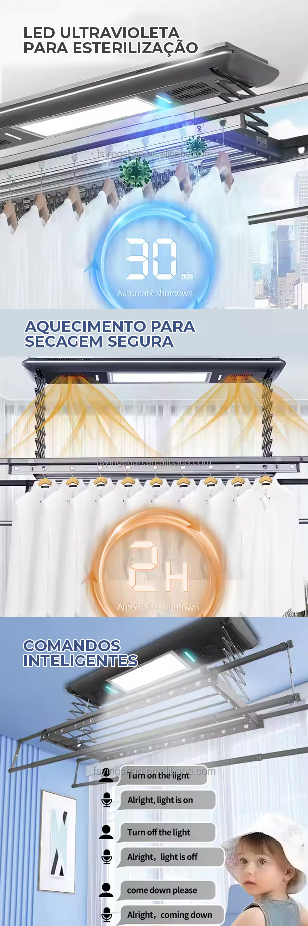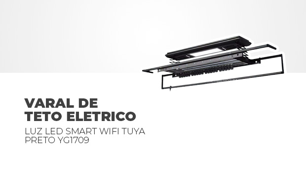 Modelo: VARAL DE TETO ELETRICO LUZ LED SMART WIFI TUYA PRETO YG1709