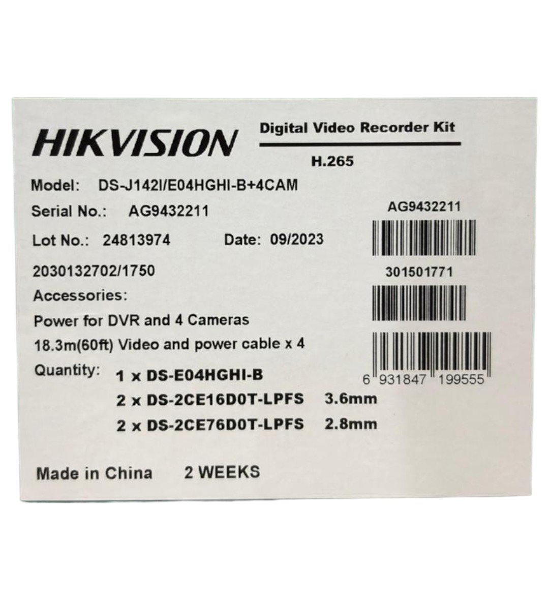 DS-J142I/E04HGHI-B – Kit de Segurança DVR de 4 Canais + 4 Câmeras