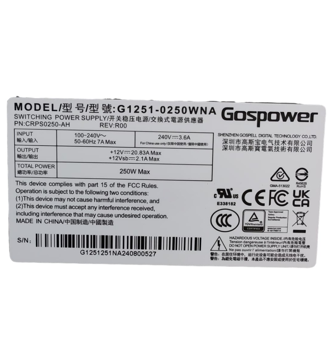 MIKROTIK FONTE 12V 20.8AMP 250W G1251-0250WNA CRS812 DDQ